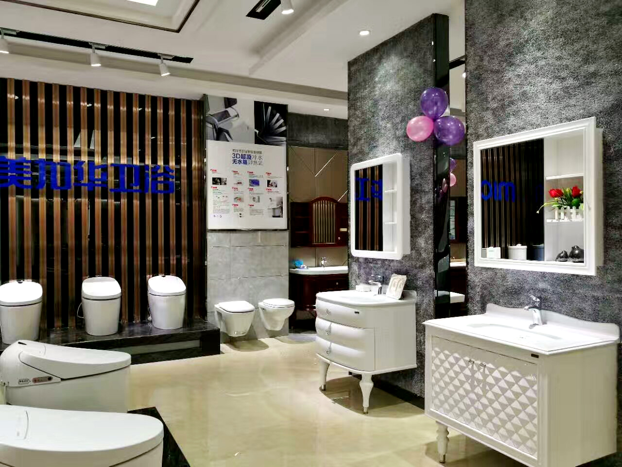 據(jù)悉,美加華衛(wèi)浴佛山旗艦店總面積高達500m2,營銷產(chǎn)品除了浴室柜和坐便器兩大王牌外,還囊括了浴缸、微鉛龍頭、花灑、淋浴房、五金配件等多項高端產(chǎn)品,品類之多,令人目不暇接。其不僅成為美加華對外形象展示的重要窗口,同時也解決了產(chǎn)品銷售的便利性問題。